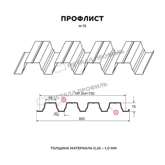 Профлист Металл Профиль Н-75 0,9 Цинк Бесцветный