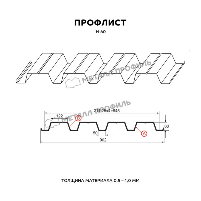 Профлист Металл Профиль Н-60 0,9 Цинк Бесцветный