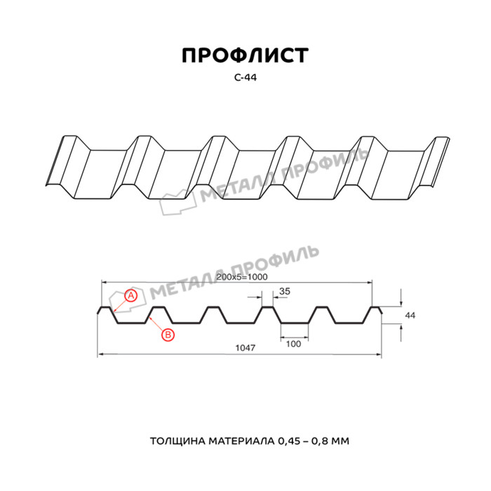 Профлист Металл Профиль С-44 0,45 Полиэстер RAL 1015 Светлая слоновая кость